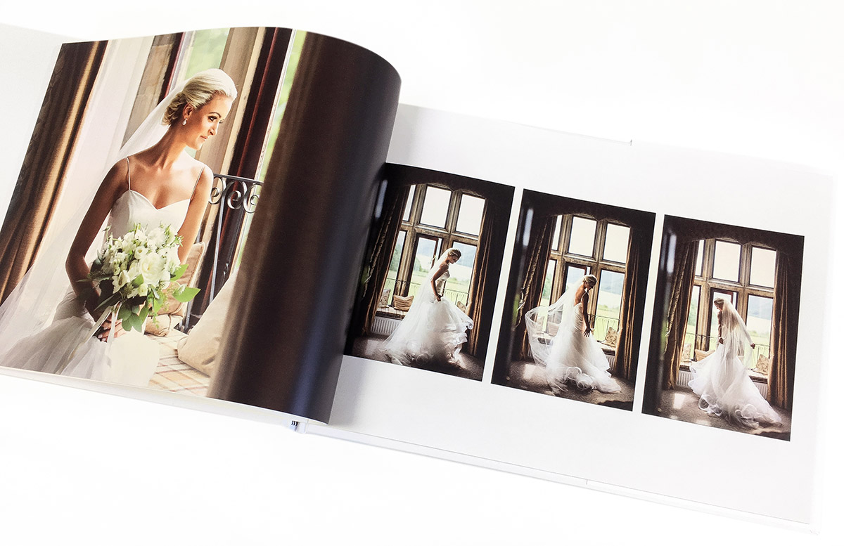 Fabulous wedding photographs should be presented beautifully. My collection of books, all hand crafted in the UK, combine the best traditions of book binding with simple contemporary creative design. Entirely bespoke, you can add as many images and pages as you wish, finished in satin paper, buckram or leather, you choose. The pages are painstakingly colour managed by myself and the layouts are designed by a professional book designer, a very long way from drag and drop software.