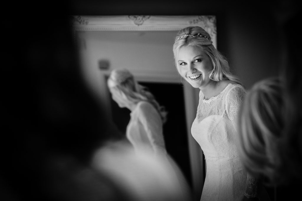 It was the first dress I tried that I liked at Julia Tasker in Bowness. I did a bit more shopping around but kept comparing back to it and went to try it on again and loved it so that was it. It was a pretty easy decision. It was a strapless dress and the lace top half was custom made by Julia Tasker as I knew I wanted sleeves and a slight off the shoulder look. It was the lace of the dress I was drawn to as it is a very delicate fine lace which I have struggled to find elsewhere. I would never have tried on the dress if it wasn’t for Julia’s expertise as it was a completely different style to what I was looking for in terms of neckline but with her encouragement and confidence that she could create the jacket for the dress to create the end look I wanted with this dress – and she did.